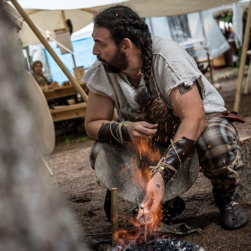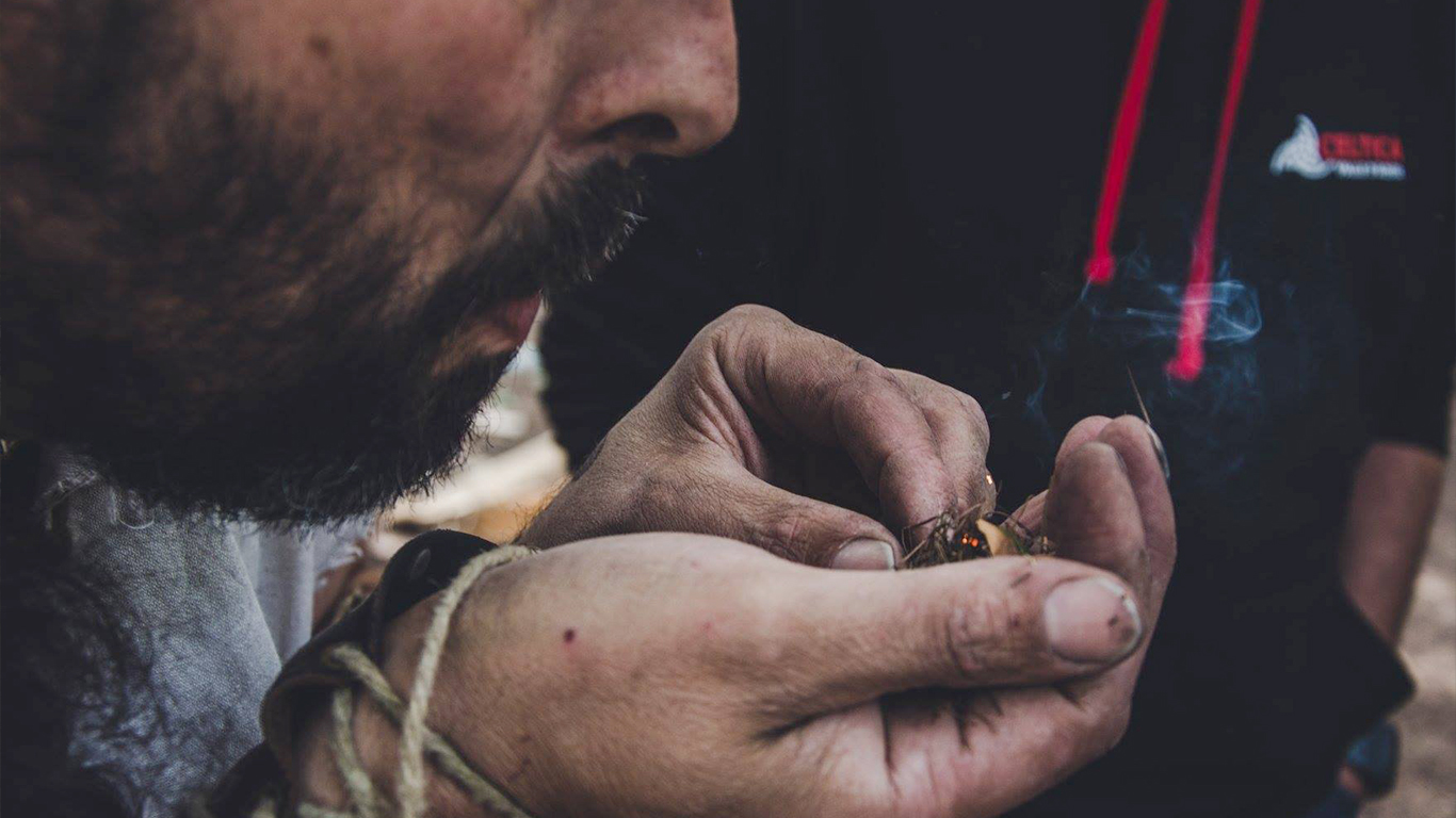 Accensione del fuoco con metodo antico